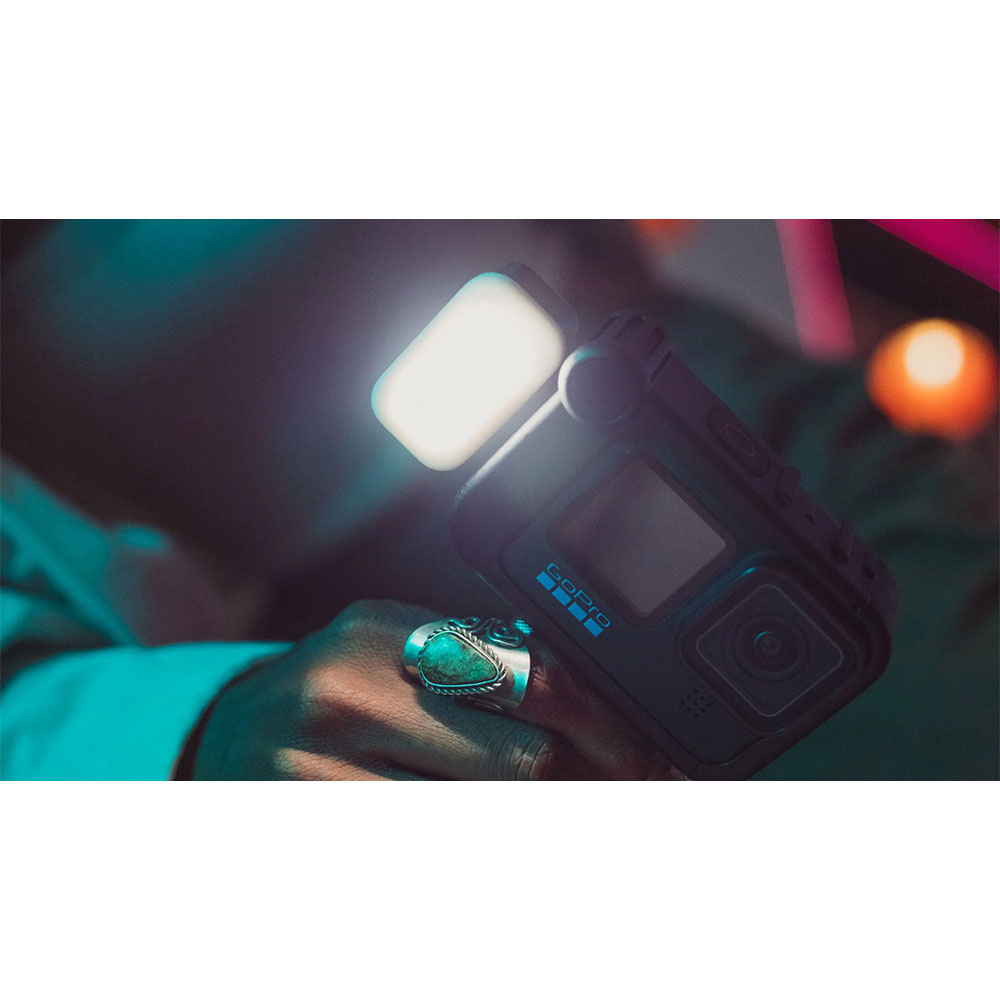 GoPro ライトモッドは、アクションカメラ撮影に適した高耐久のLEDライトアクセサリーです。コンパクトなボディに高輝度LEDを搭載し、最大200ルーメンの明るさを確保しています。屋内の暗所撮影から夜間のアクティビティ、商品撮影やVlog収録まで幅広く対応できる点が特徴です。